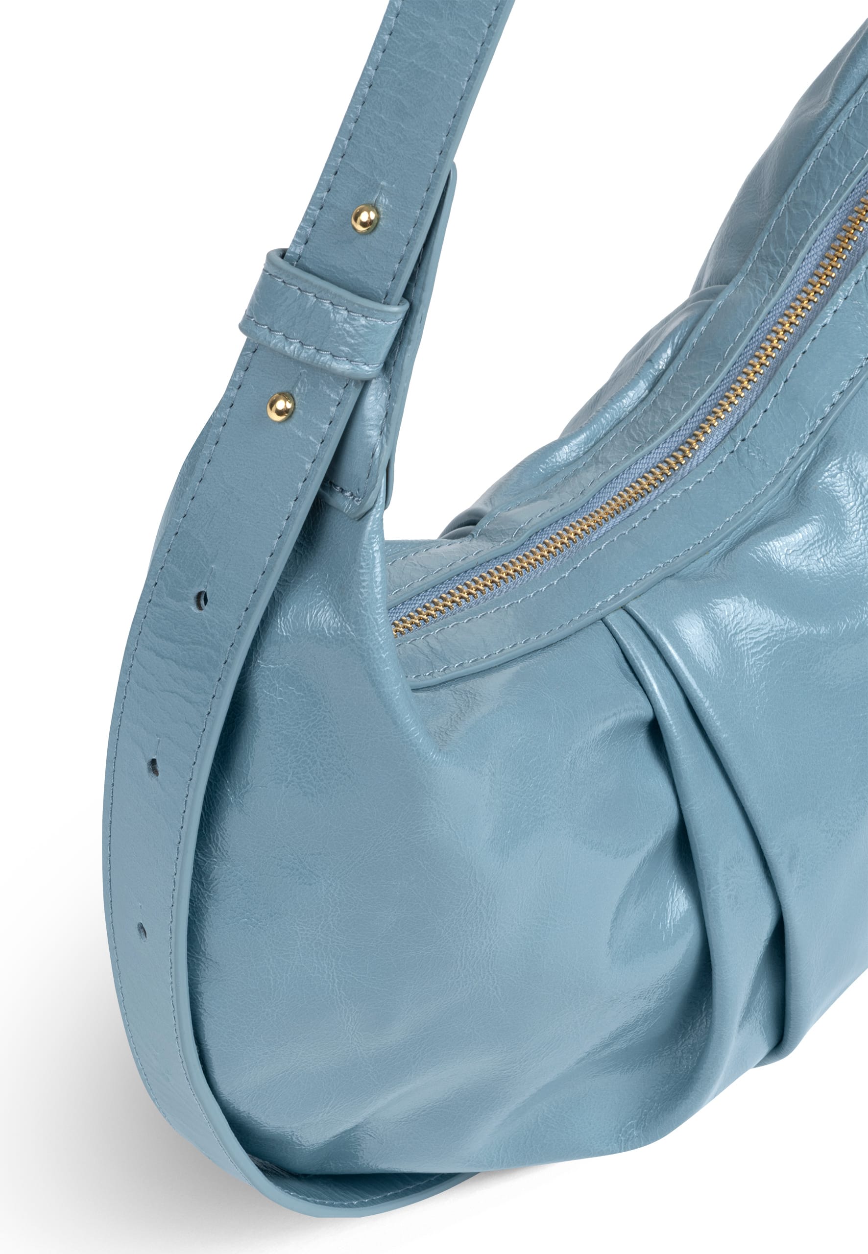 Stylowa i wielofunkcyjna torba na ramię z dłuższym, regulowanym paskiem. Możesz ją nosić jako mniejszą torebkę na ramię, ściągając ją paskiem, albo wydłużyć go, aby swobodnie założyć Akoyę przez ciało, jak większą nerkę. Komora główna zapinana na zamek, w środku dwie kieszonki - jedna zapinana na suwak, druga wsuwana.