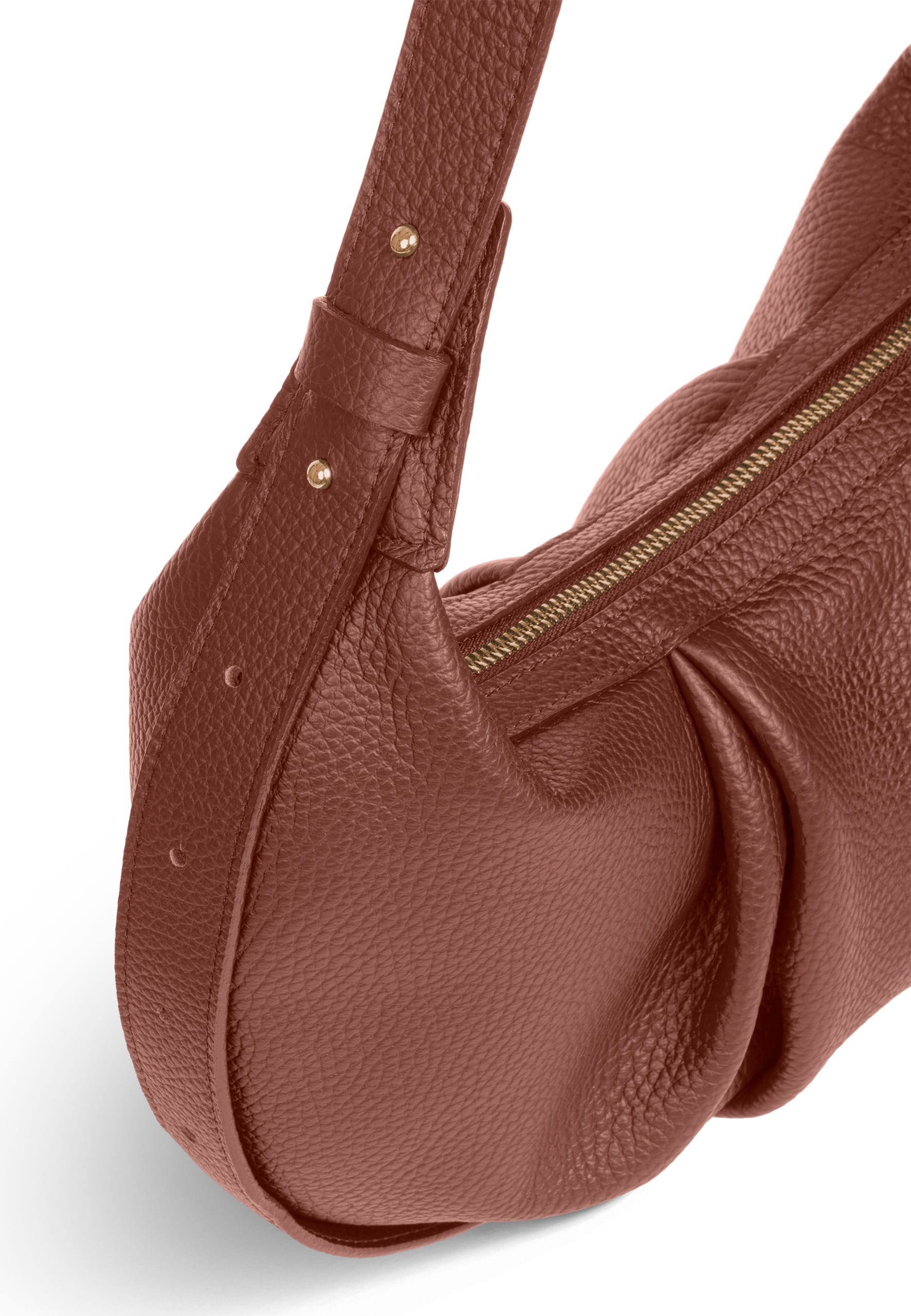 Stylowa i wielofunkcyjna torba na ramię z dłuższym, regulowanym paskiem. Możesz ją nosić jako mniejszą torebkę na ramię, ściągając ją paskiem, albo wydłużyć go, aby swobodnie założyć Akoyę przez ciało, jak większą nerkę. Komora główna zapinana na zamek, w środku dwie kieszonki - jedna zapinana na suwak, druga wsuwana.